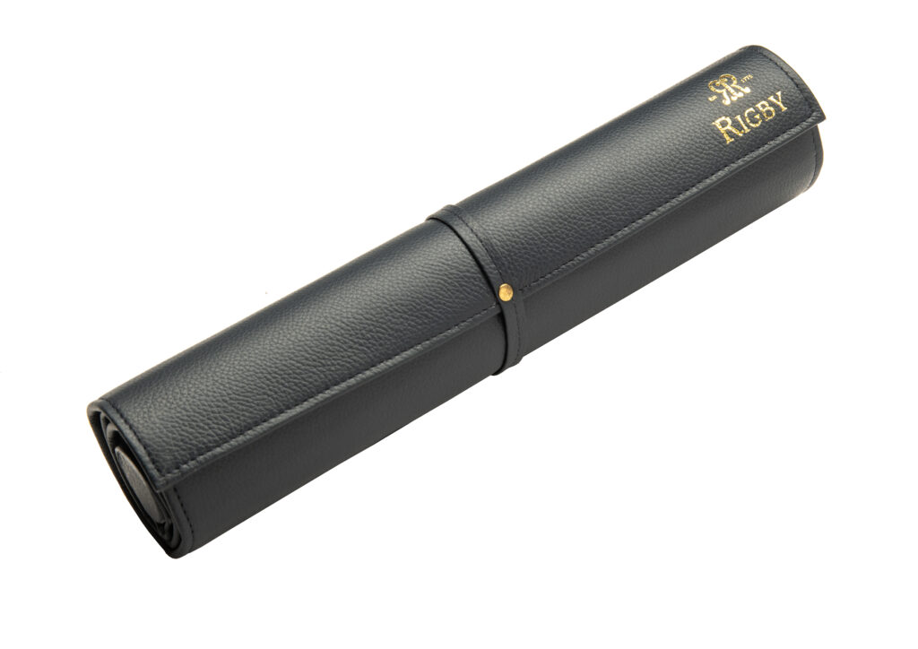 Embossed with the iconic Rigby ‘double R’ logo in gold, it features a leather game roll with a convenient carry handle and a zipped compartment for storing brass and leather counters, dice, and the doubling cube.